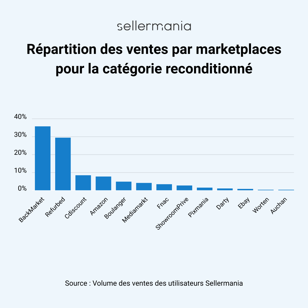 Côté marketplaces, près de deux ventes sur trois se font chez les spécialistes du reconditionné (Back Market, Refurbed). Ce n’est pas un hasard : ce sont eux qui codifient la confiance — gestions des états, garanties, SAV.